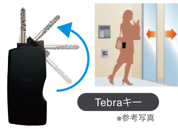 Tebraキーを携帯していれば、ハンズフリーでエントランスのオートドアを解錠します。小さなお子さま連れや荷物が多く、両手がふさがっている時などにも便利です。