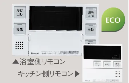 お湯はり、温度設定、追い焚きなど機能満載。キッチンからの操作も可能です。