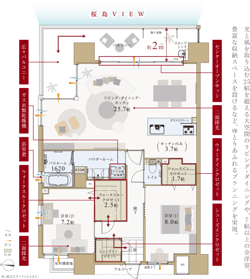 ※1.掲載の写真は、モデルルーム(Dタイプ/Exectiveプラン)を2023年8月に撮影したもので、一部オプション(有償)が含まれております。また家具・調度品等は販売価格に含まれておりません。