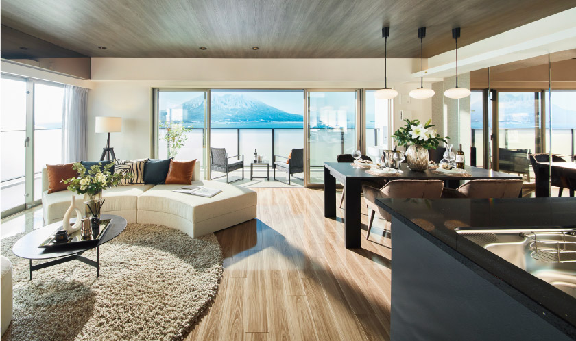 桜島の雄⼤な景⾊の中での暮らしと様々な設備やサービスも魅⼒