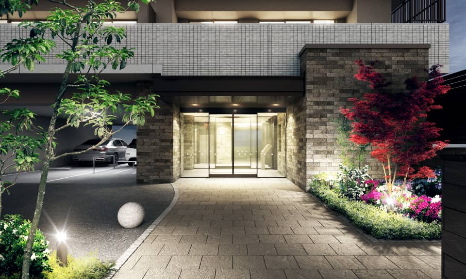 ※掲載の完成予想図は図面を基に描き起こしたもので設計・設備・仕様・色調・植栽等、実際とは多少異なる場合がございます。また、行政官庁の指導または施工上の都合により、形状や仕上げ等が変更となる場合がございます。予めご了承ください。