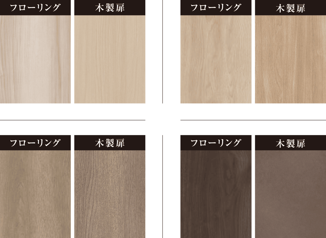 フローリングと扉のカラーを4パターンからセレクト可能